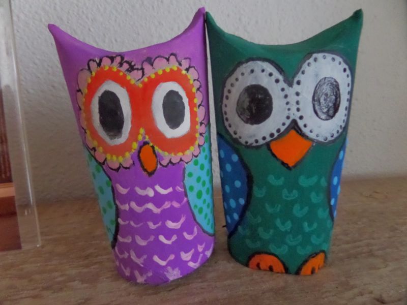 Dit is een uil gemaakt van wc rollen. Ik ga het uitleggen.
