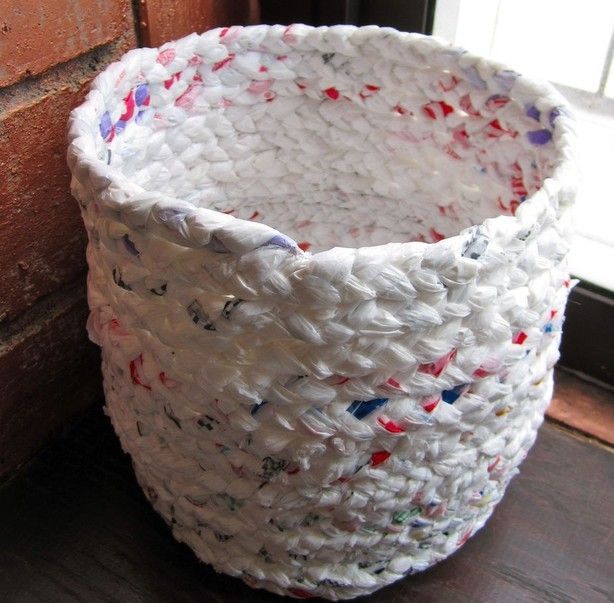 Dit is een gevlochten mand/prullenbak. Gemaakt van plastic tassen. Ik hoef het niet uitteleggen het is simpel. Je hebt wel nodig: Veel GEDULD en plastic zakken, ik weet niet hoeveel plastic zakken je nodig hebt, het hangt er namelijk vanaf hoe groot je de mand wilt hebben dus bekijk het zelf maar. Ik ga het toch voor de zekerheid uitleggen. Stap 1. Knip de tassen in gelijke stukjes en dan ben je klaar voor stap 2. En Stap 2 is makkelijk, je hoeft alleen te vlechten omhoog en dan krijg je op gegeven moment een patroon. en dan ben je al bijna klaar met vlechten. En was moelijk?